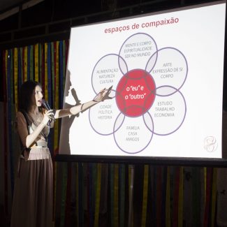 Em 2020 surgiu a ideia do projeto “Expressões de Compaixão”, uma iniciativa para unir linguagens artísticas com o objetivo de criar imagens plurais sobre como experienciamos a compaixão. Como primeira Expressão, eu e Luma Torres cocriamos a vivência performática “Pesos do Mundo – Dissolve e Coagula”, lançada em 2021.